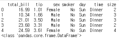 이때 데이터프레임의 total_bill, tip 등의 열을 변수라고 부르기도 한다.