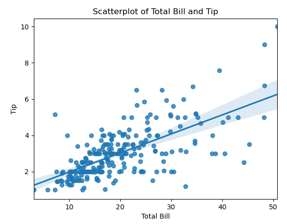 ax1.set_title('Scatterplot of Total Bill and Tip')