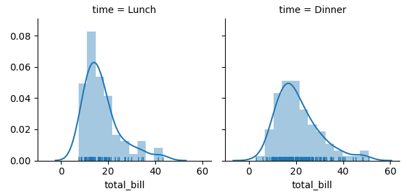facet.map(sns.distplot, 'total_bill', rug=True)