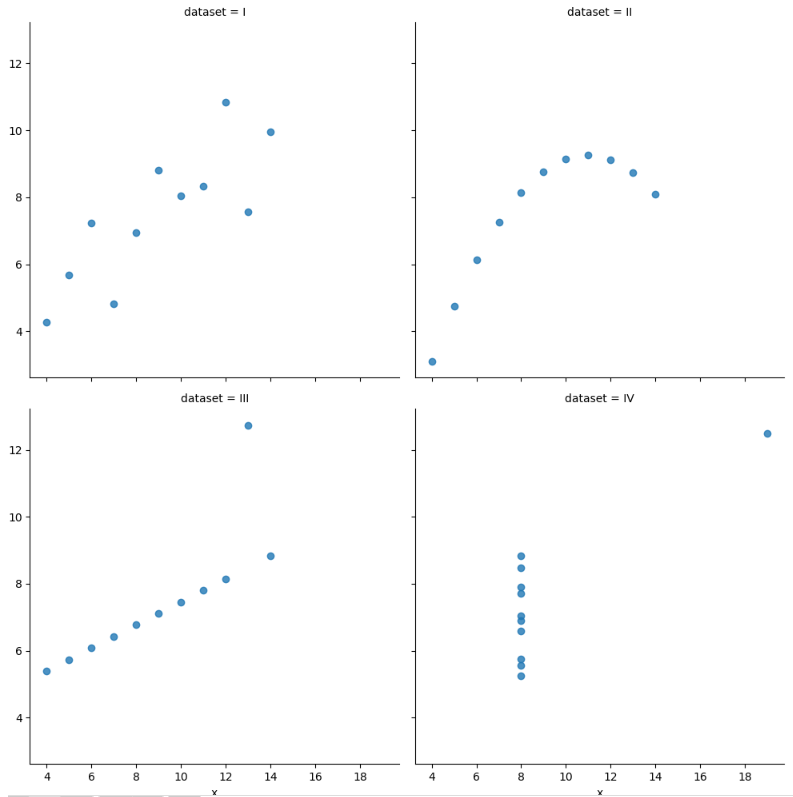 앤스콤 4분할 그래프를 한 번에 그리면 다음과 같이 그려진다.
