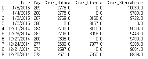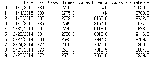 print(ebola.fillna(method='bfill').iloc[0:10, 0:5])