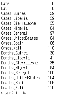 누락값의 개수를 구하는 방법은 다음과 같다.