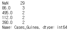 print(ebola.Cases_Guinea.value_counts(dropna=False).head())