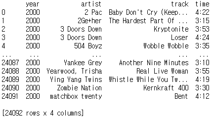 year, artist, track, time, date는 계속해서 반복 하기 때문에 따로 모아 데이터 프레임에 저장한다.