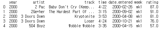 billboard_ratings = billboard_long.merge(billboard_songs, on=['year', 'artist', 'track', 'time'])