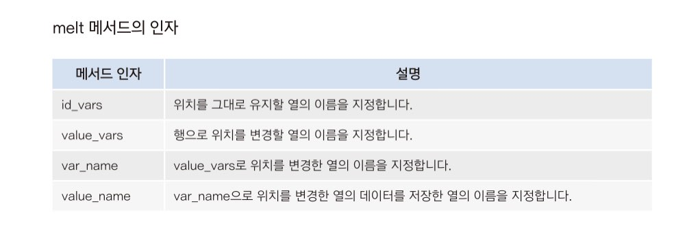 이를 깔끔하게 정리하려면 melt 메서드를 사용해야 한다.