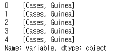 variable_split에 저장된 0번째 인덱스는 상태를 의미하고 1번째 인덱스는 나라 이름을 의미한다.