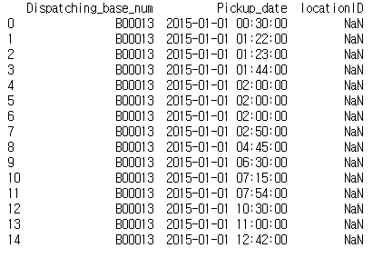 print(taxi.head(n=15))