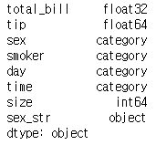 sex 열의 데이터는 남자 또는 여자로만 구성되어 있다. 그래서 카테고리 자료형으로 저장되어 있다.
