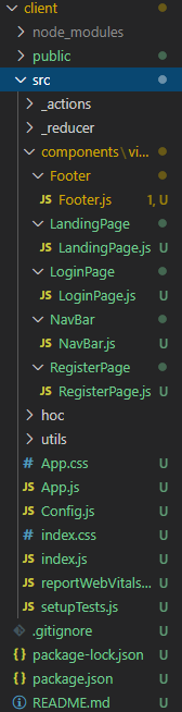 현재 프로젝트는 react를 create 하면 생성되는 구조이다. 이를 그대로 사용해도 괜찮지만 디렉토리 구조를 변경하여 나중에 추가될 기능이나 모듈에 대해 관리하기 쉽게 만들어 주는 것이 좋다.