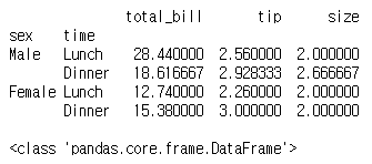 bill_sex_time = tips_10.groupby(['sex', 'time'])