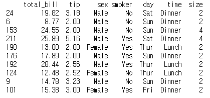 tips_10 = sns.load_dataset('tips').sample(10)