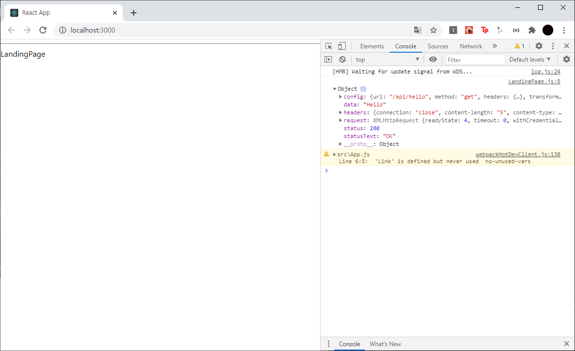 error가 없어지고 data에 Hello가 출력되는 것을 볼 수 있다.