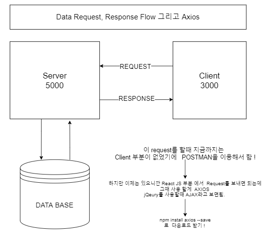 client가 없을 때는 postman을 사용하여 테스트해봤다. 이제 AXIOS를 이용하여 구현해 보자.
