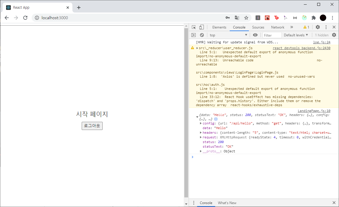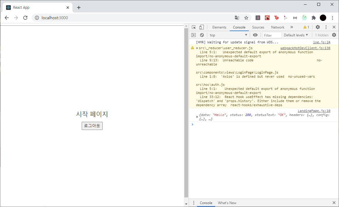 올바르게 동작한다면 LandingPage로 보내져야 한다.