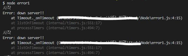 노드에서는 예외 처리가 정말 중요하다. 예외란 보통 처리하지 못한 에러를 가리킨다.
