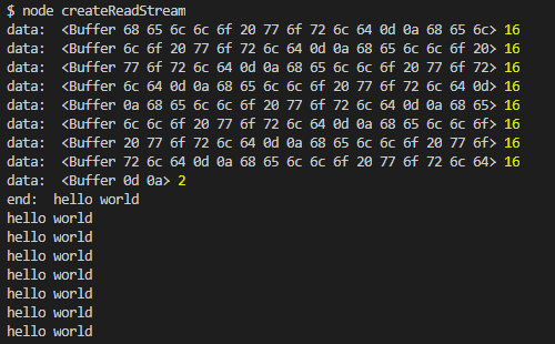 const readStream = fs.createReadStream('./read.txt', { highWaterMark: 16});