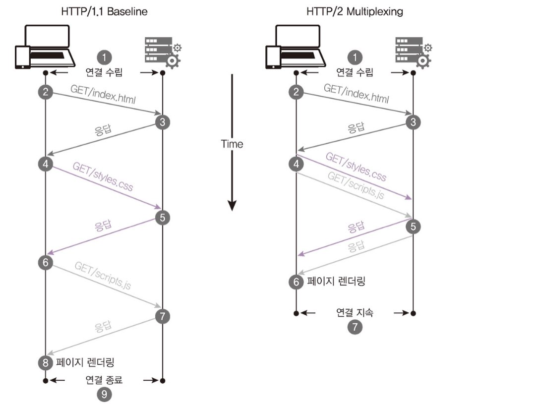 http/2는 요청 및 응답 방식이 기존 http/1.1보다 개선되어 훨씬 효율적으로 요청을 보낸다.