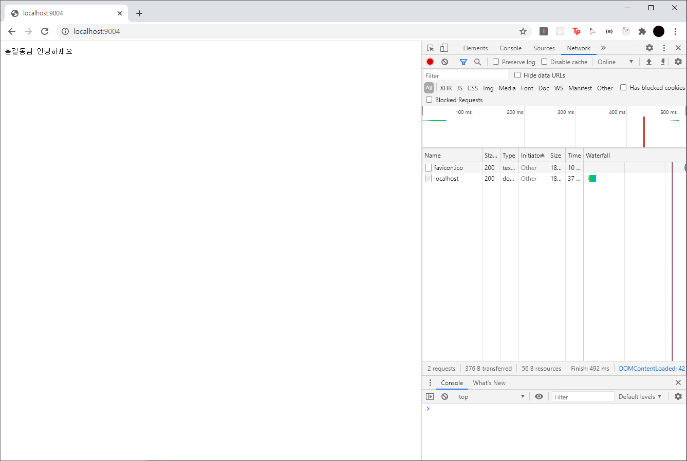 /favicon.ico는 요청한 적이 없는데 두 개가 기록되어 있다.