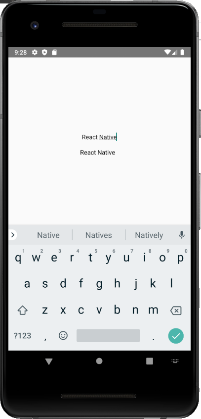 StateText라는 Component를 만들었다. <TextInput>과 <Text> 태그를 나열한 Component이며, <TextInput>에 입력받은 내용을 <Text>에 적용시켜 출력하는 Component이다.