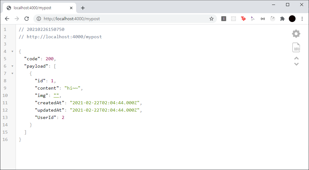 GET /mypost 라우터는 API를 사용해 자신이 작성한 포스트를 JSON 형식으로 가져오는 라우터이다.