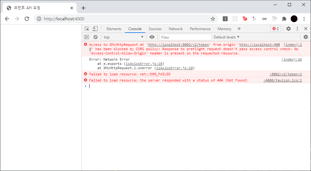 Access-Control-Allow-Origin이라는 헤더가 없다는 내용의 에러이다.