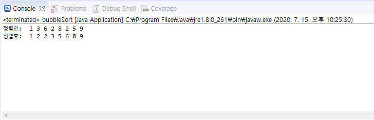System.out.print("정렬후: ");