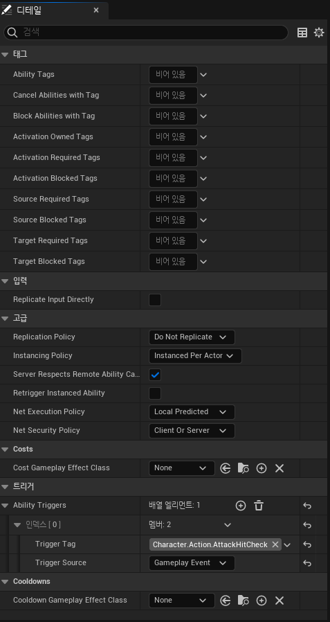 Event를 통해 TriggerGameplayTag를 소유한 GA를 실행하기 때문에 에디터에서 이를 설정해 주어야 한다.