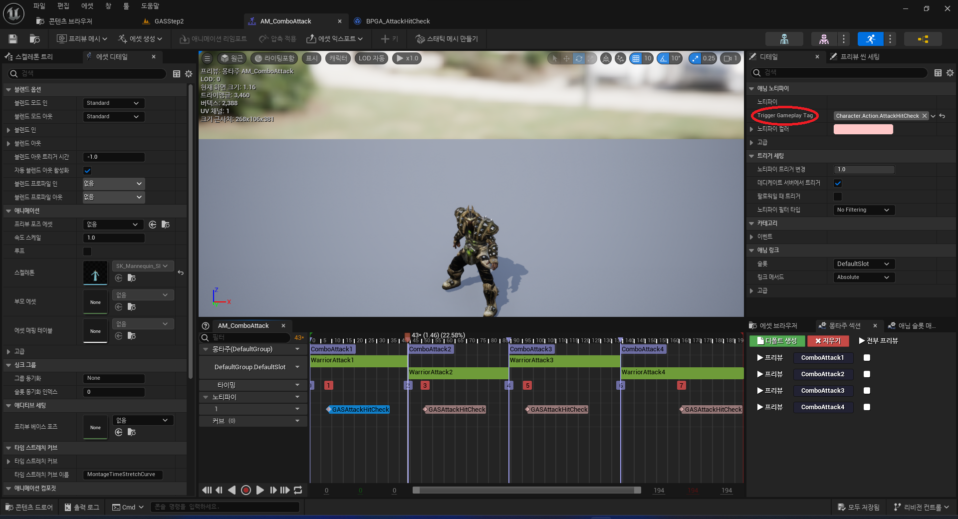 - AnimNotify가 실행되면 소유한 ASC(AbilitySystemComponent)에 공격판정을 위해 GA(GameplayAbility) 실행을 요청한다.
