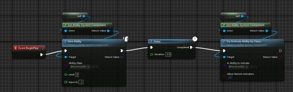 그러면 해당 GA의 ActivateAbility가 실행되어 무적 태그를 ASC에 추가한다.