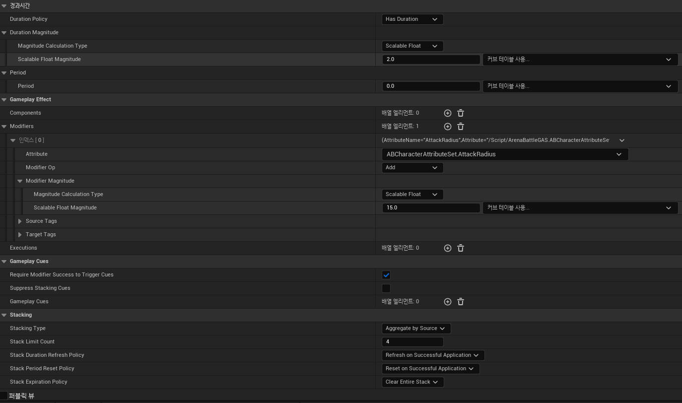 무적 기능과 비슷하게 GE의 Duration Policy를 설정하여 일시적인 버프를 구현할 수 있다.