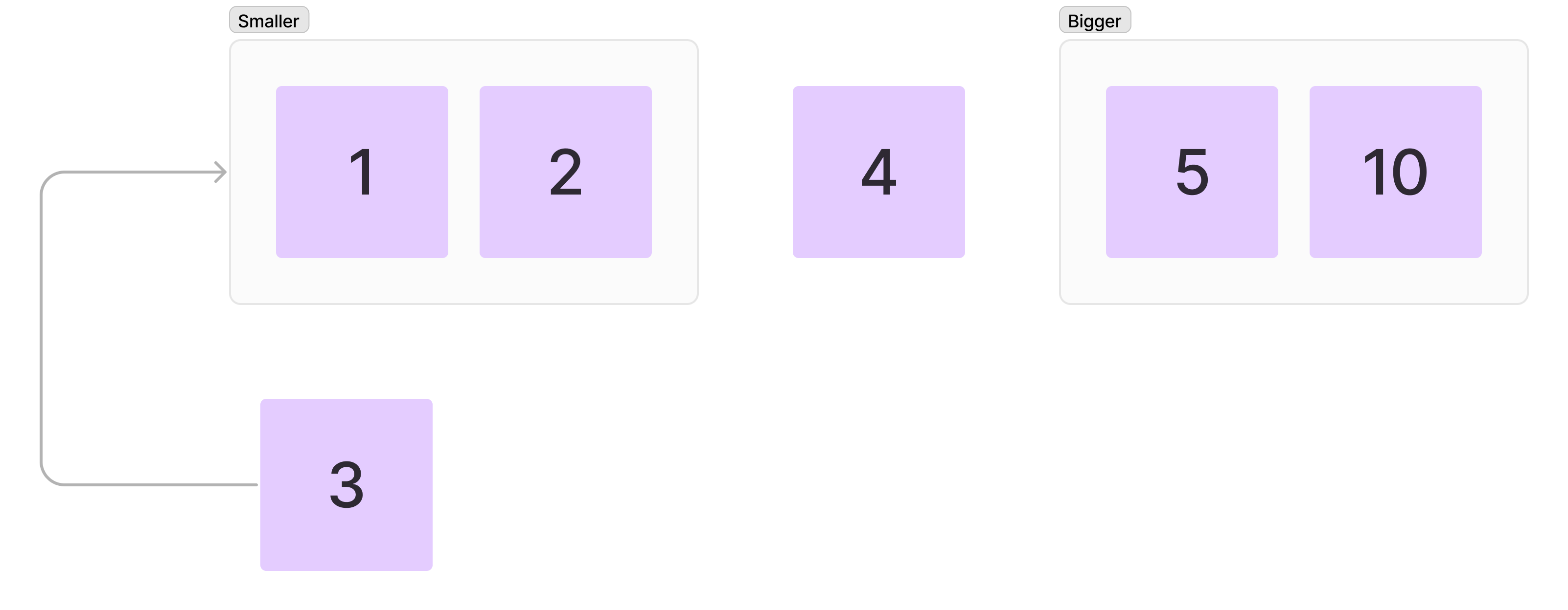 이후, 2라는 입력이 들어오면, 역시 큰 수로 분리된다.