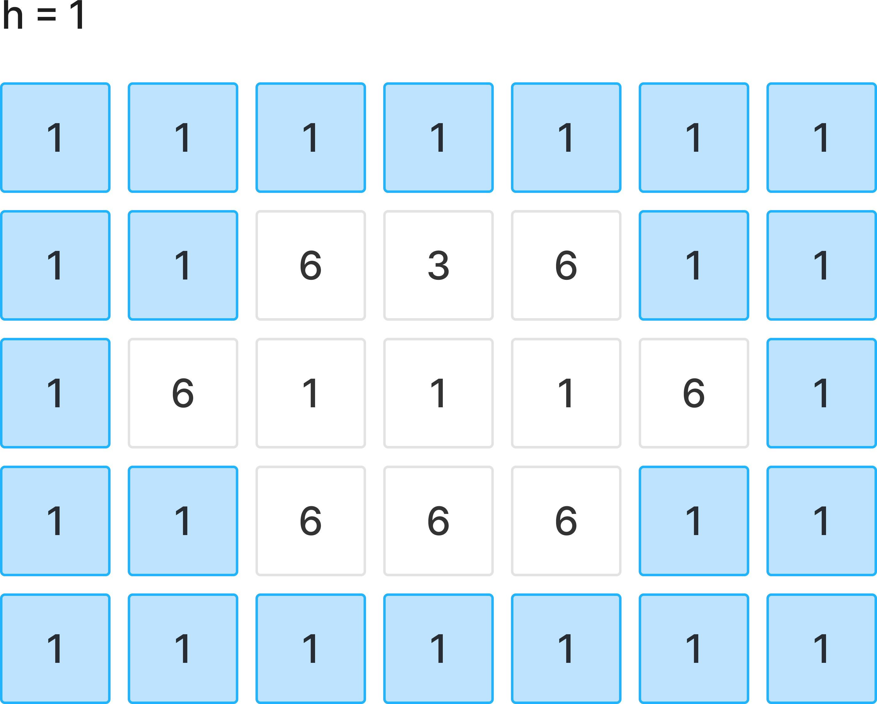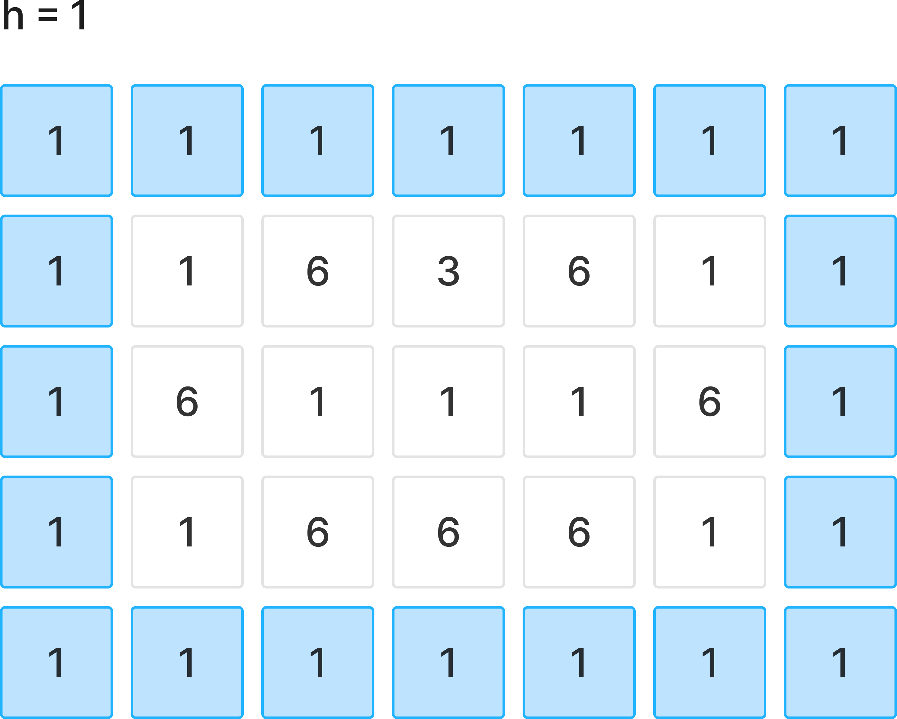 즉, 가장 낮은 높이인 1만큼의 물을 채울 수 있는 칸을 카운팅하는 것이다.