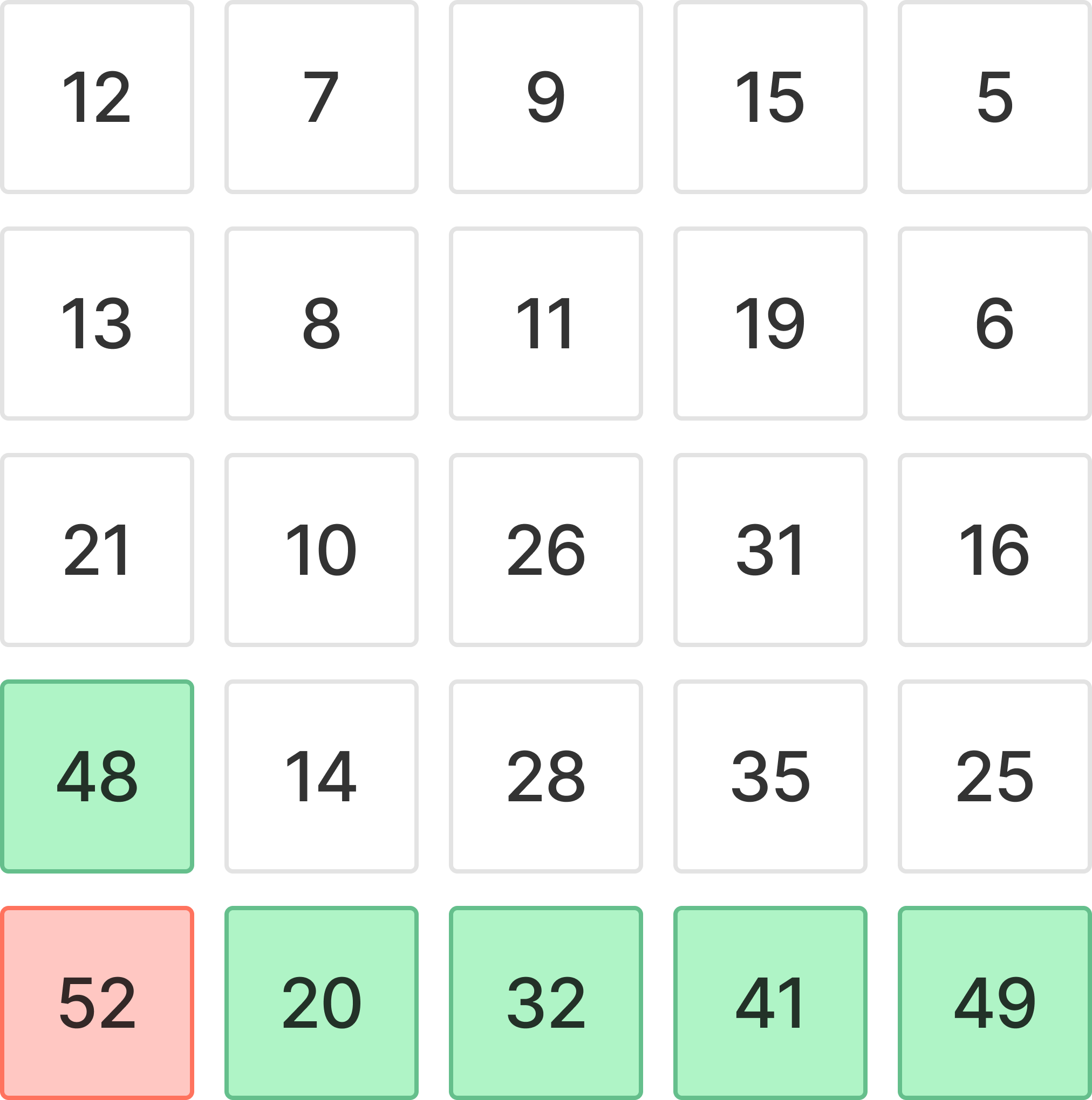 52가 가장 큰 수이고, 그다음으로 큰 수는 초록색중 하나가 된다는 뜻이다.