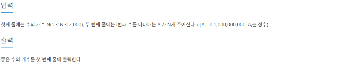 N개의 수가 주어지면 그 중에서 좋은 수의 개수는 몇 개인지 출력하라.