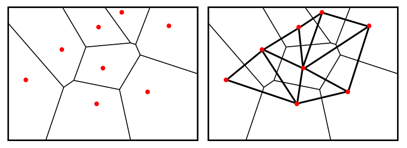 들로네 삼각 분할은 점들을 연결하는 삼각형을 만들 때, 최대한 정삼각형에 가깝게 만드는 방식으로 분할하는 것이다.