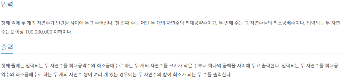 문제를 요약하면, 전달받은 A, B를 각각 최대 공약수, 최소 공배수로 하는 수의 쌍을 구하는 것이다.