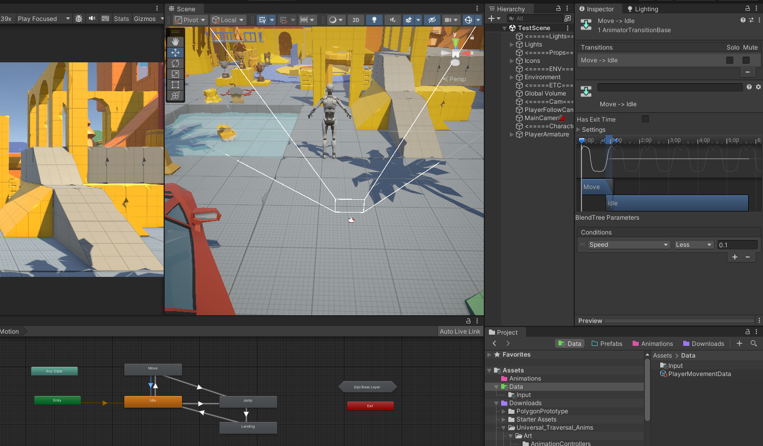 걷기에서 뛰기로 모션이 전환될 때 너무 빠르게 전환되는 문제나 멈출 때 등 어색한 부분을 개선해 보자.