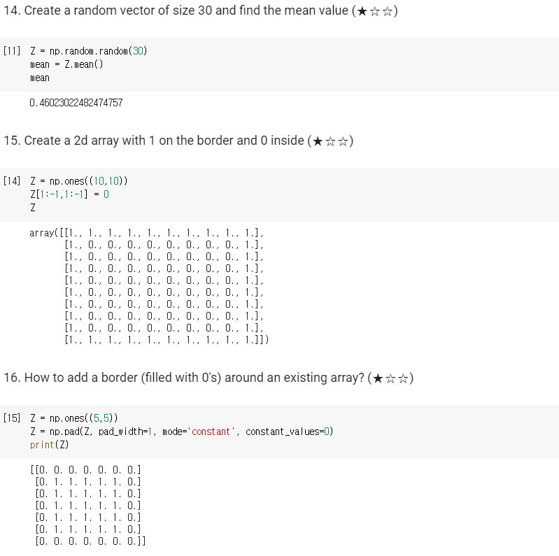 11. np.eye(n): n*n사이즈의 항등 행렬을 생성한다.