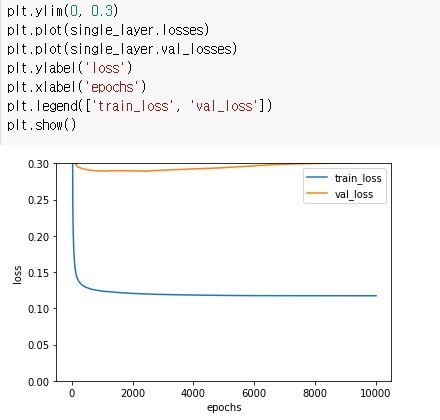 self.val_losses.append((val_loss + self.reg_loss()) / len(y_val)) #로그 손실, 규제 손실 더하여 기록