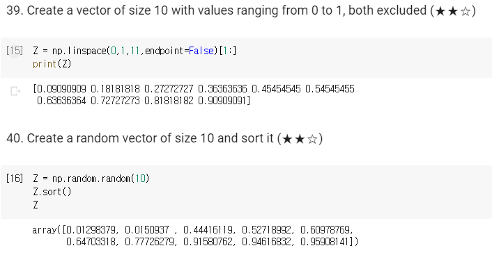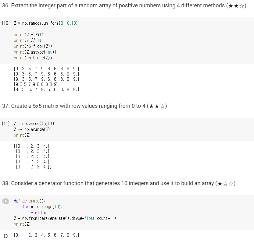 38. fromiter(): generate를 사용하여 0~10까지 만든 뒤 이를 1차원 벡터로 만든다.