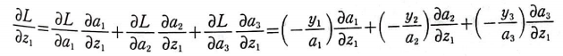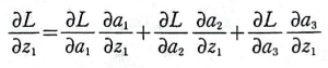 a1, a2, a3가 모두 z1의 함수이고 손실 함수 L이 a1, a2, a3의 함수이다.