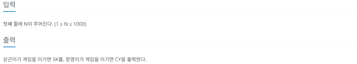 두 사람이 완벽하게 게임을 했을 때, 이기는 사람을 구하는 프로그램을 작성하시오. 게임은 상근이가 먼저 시작한다.
