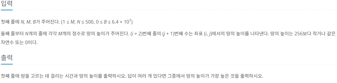 문제를 간단히 생각해보면 결국 0~256 사이의 높이를 갖는 평평한 땅을 만들어야 한다.