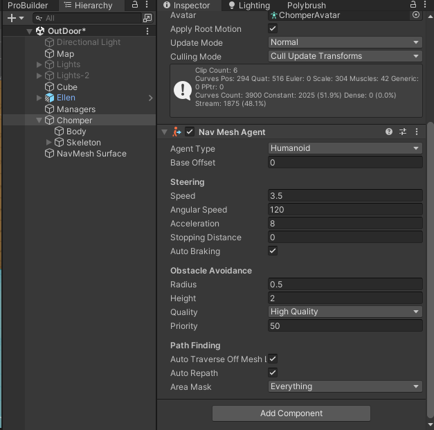 이제, AI를 담당할 객체에 'NavMesh Agent'를 달아주자.