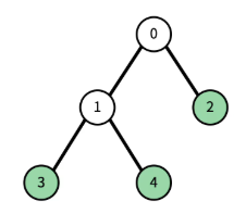 현재 리프 노드의 개수는 3개이다. (초록색 색칠된 노드) 이때, 1번을 지우면, 다음과 같이 변한다. 검정색으로 색칠된 노드가 트리에서 제거된 노드이다.